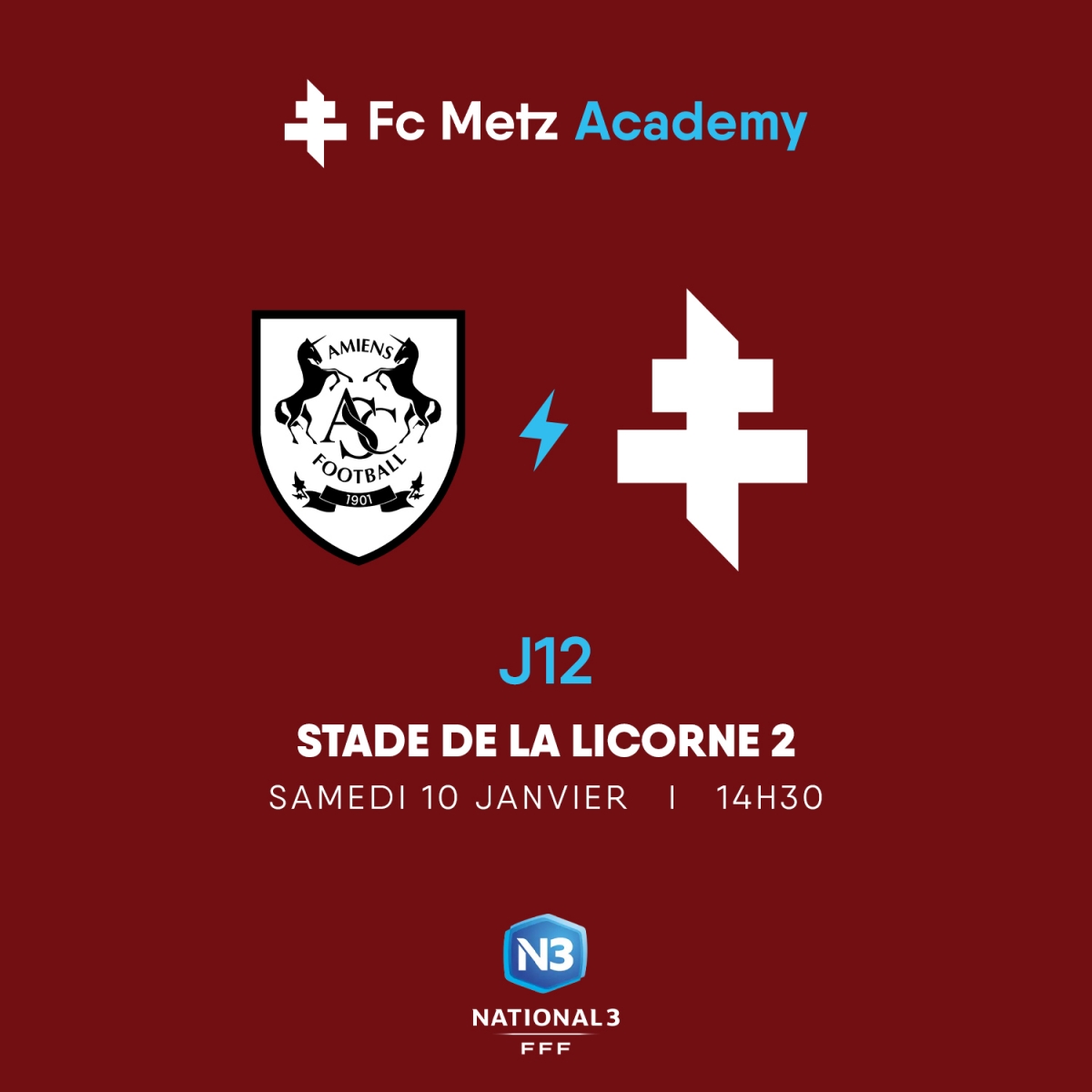 À l'occasion de la 12ème journée de championnat de National 3, les Grenats iront défier la réserve de l'Amiens SC. Le coup d'envoi sera donné à 14h30 ce samedi 10 janvier.