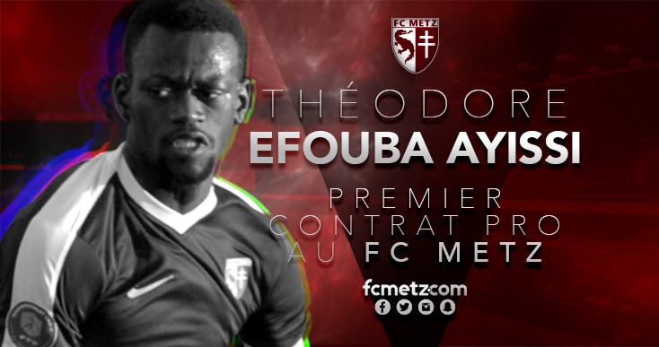 Titulaire d'un BAC Pro commerce, Théodore Efouba Ayissi a disputé vingt-deux rencontres cette saison en CFA 2. Son volume de jeu et sa capacité à gagner des duels ont d'ailleurs convaincu Philippe Hinschberger de l'appeler à quatre reprises pour des rencontres avec le groupe professionnel. Ce premier contrat professionnel s'inscrit donc dans une suite logique afin de poursuivre sa formation sur les bords de la Moselle.