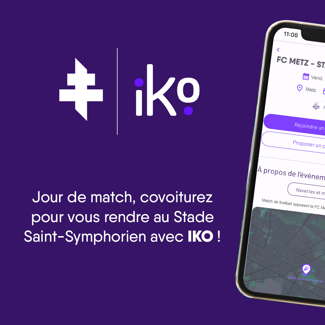 Iko, application de covoiturage événementiel, propose plus de 100 000 évènements en covoiturage. Elle offre une solution de trajet pratique, de nuit comme de jour, à tous les supporters passionnés qui souhaitent se rendre au Stade Saint-Symphorien ou à l’extérieur pour suivre le FC Metz. En choisissant Iko et en partageant ces trajets, les utilisateurs font des rencontres tout en économisant et en réduisant leur empreinte carbone !