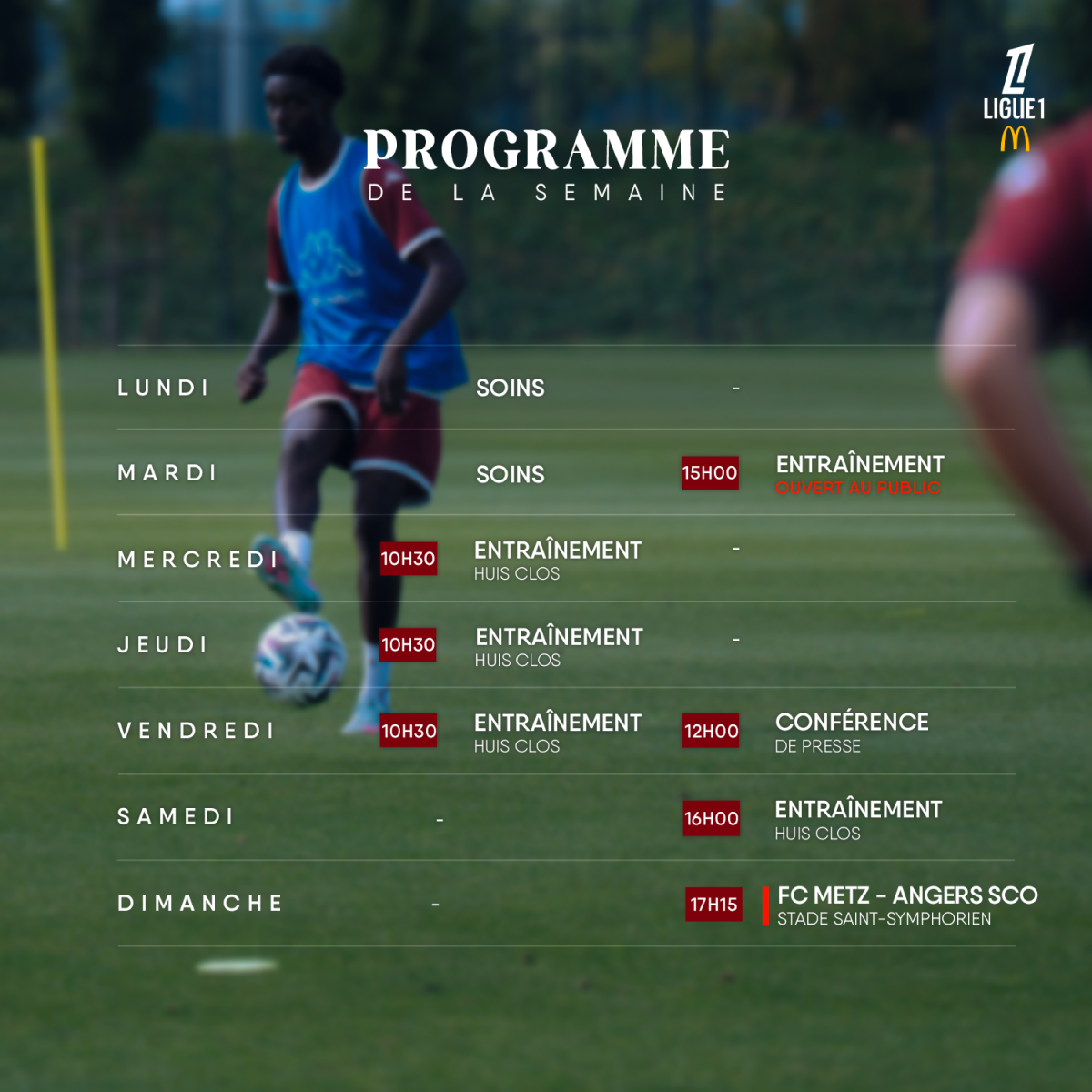 Le programme de la semaine du groupe professionnel est désormais disponible. Si vous souhaitez assister à un entraînement ouvert en public à Frescaty, en groupe, nous vous invitons à contacter communication@fcmetz.com afin d'anticiper votre venue (Photo : Let's Go Metz).