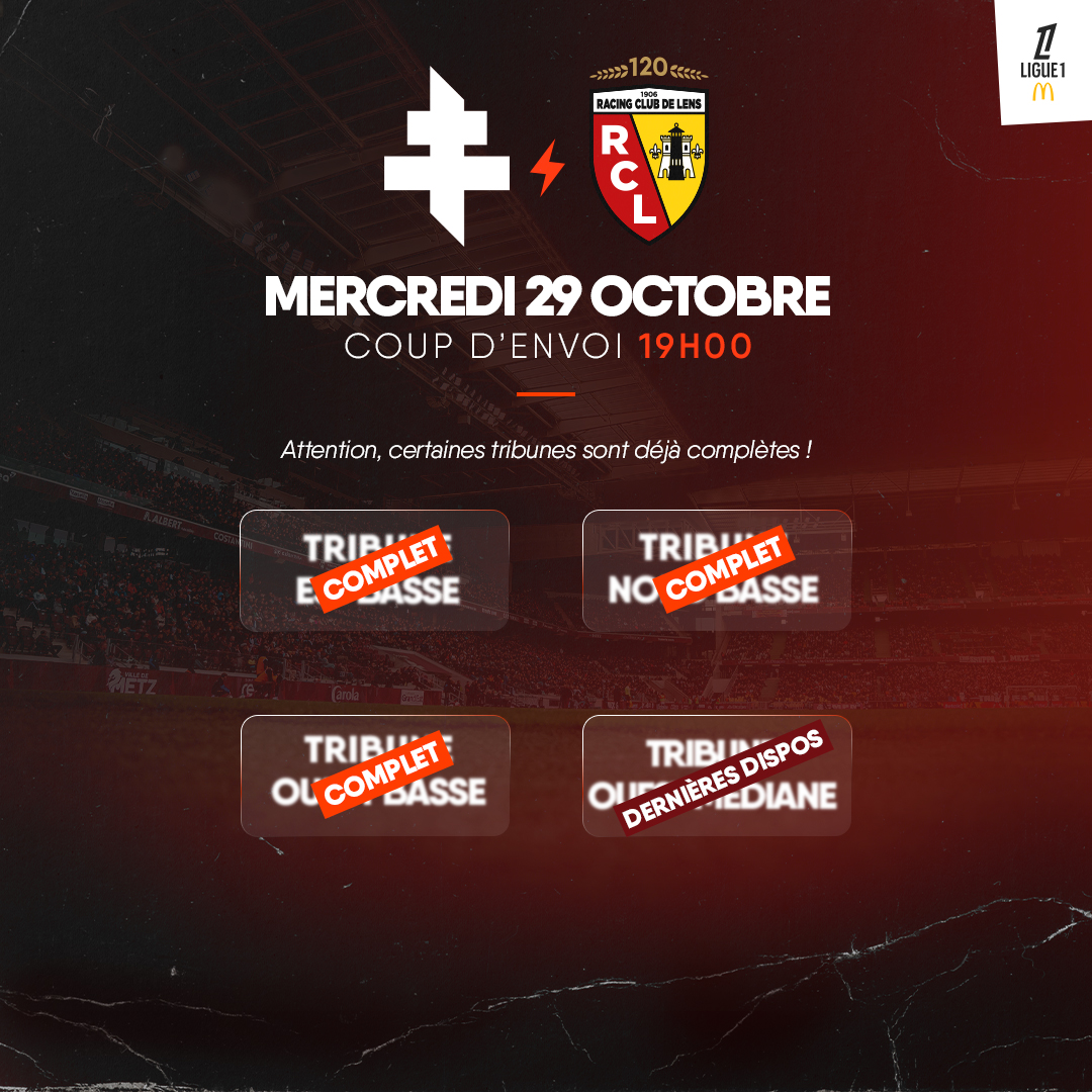 Après leur déplacement à Lille, les Grenats retrouveront leur antre de Saint-Symphorien et recevront le RC Lens, le mercredi 29 octobre à 19h00.