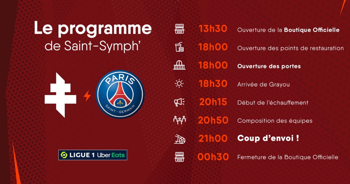 Ce mercredi 22 septembre, à l'occasion de la réception du Paris Saint-Germain, le Stade Saint-Symphorien ouvrira exceptionnellement ses portes trois heures avant le coup d'envoi !