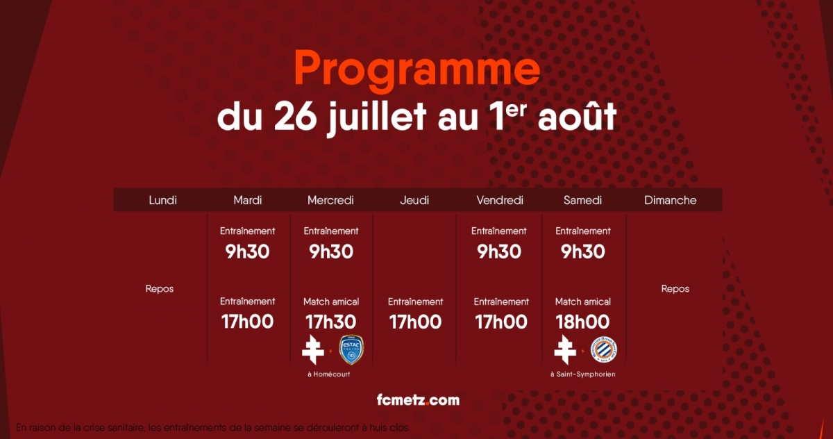 En effet, ce jeudi 29 juillet, le club à la Croix de Lorraine invite ses supporters au Stade Saint-Symphorien afin d'assister à un entraînement ouvert au grand public. À l'issue de cette séance, plusieurs animations et surprises seront au programme.