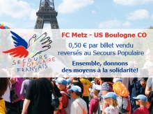 Le FC Metz s’associe au partenariat national noué avec le Secours Populaire. A l’occasion du match contre Boulogne, 0,50 euros par billet vendu seront reversés à l’association.